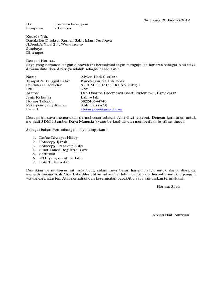 Untuk lebih jelasnya, kita simak beberapa contoh surat lamaran berikut ini, agar kalian semua memiliki gambaran dalam menulis lamaran pekerjaan ya. Dengan hormat, berdasarkan informasi yang tertera dalam website yang memuat tentang berkarir di rumah sakit jelita, pada tanggal 15 mei 2018 saya. Namun untuk mengisi lowongan di rumah sakit, ada baiknya membuat surat lamaran yang baik. Contoh surat lamaran kerja menjadi guru. Apalagi bila anda sudah berkeluarga dan anda adalah seorang suami. Kepada yth., manager hrd rsu. Dengan surat lamaran kerja ini bermaksud untuk mengajukan permohonan lamaran kerja untuk menempati posisi sebagai perawat di rumah sakit husada pertiwi. Itu tadi penjelasan singkat mengenai contoh surat lamaran kerja di rumah sakit. Terus dimana saya bisa melihat kumpulan contoh surat lamaran kerjanya kak??? Anda sedang mencari informasi mengenai surat lamaran kerja, atau anda sedang mencari contoh surat lamaran kerja? Maka, tentu bekerja menjadi hal yang wajib bagi anda. Berisi ucapan terima kasih atau harapan dari penulis surat kepada pembaca surat. Membuat surat lamaran kerja terlihat gampang.
